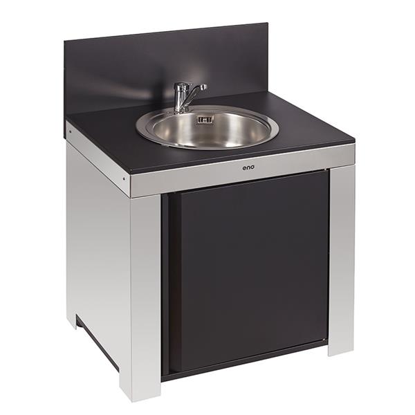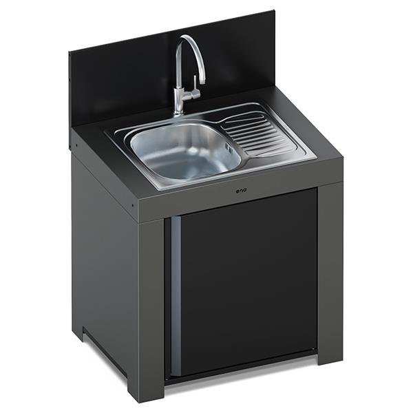 ENO MODULO BASE INOX PORTE NOIR + PLATEAU GALVA AVEC EVIER ROBINET + SYPHON NO